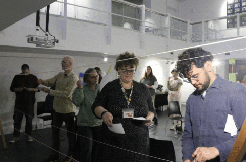 Artist José García Oliva with a variety of participants at a Creative Gathering on Labour, Visibility and Identity, 2024.