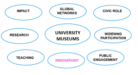 At a time when university finances are under extreme pressure, articulating exactly how we as university museums and cultural organisations contribute to the core priorities of our parent institutions, without losing our own identities, has never felt more urgent. We need, and want, to be more than a ‘nice-to-have’. As we make the case, each of us will strike a different balance between emphasising our contributions to research, teaching and learning, knowledge exchange, impact, engagement, civic role, widening participation – to name a few. This blog, based on a UMG 2025 conference presentation, asks what happens if we seek to make innovation a key part of our positioning? How can we demonstrate our distinctive potential to catalyse new approaches? How does aligning ourselves with an innovation agenda impact what we do, and how we are perceived?